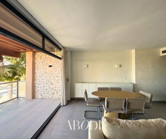 The apartment features a spacious terrace ideal for outdoor dining, sunbathing, or simply relaxing. A stylish built-in planter adds a natural, tranquil ambiance, while the terrace also offers attractive sea and mountain views.